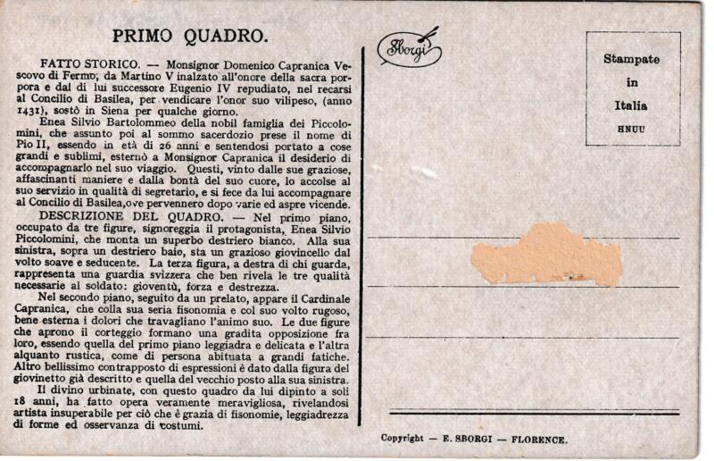 Cartolina d’epoca Roma Piccolomini – Enea Piccolomini parte per il Concilio di Basilea Primo Quadro