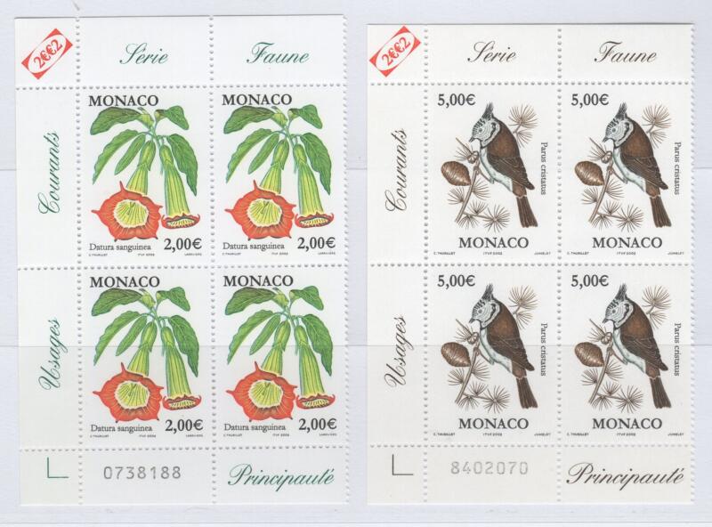 Francobolli Monaco Anno 2002 Natura Quartine d'angolo