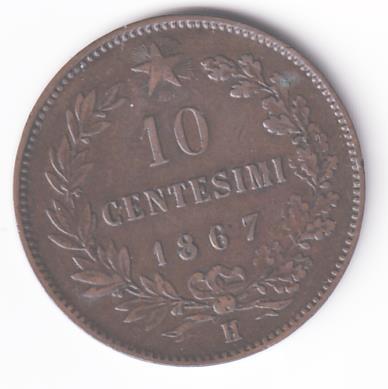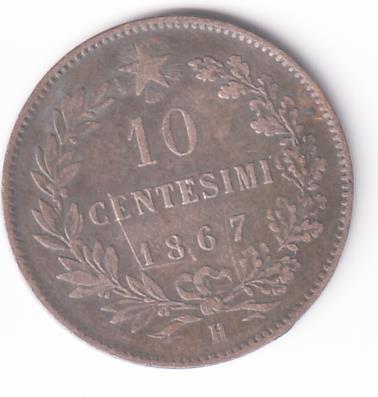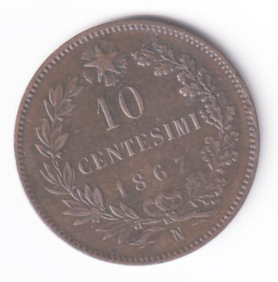 Moneta Regno d’Italia VITTORIO EMANUELE II RE D’ITALIA – 10 Centesimi 1867 Napoli