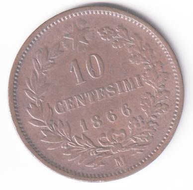 Moneta Regno d’Italia VITTORIO EMANUELE II RE D’ITALIA – 10 Centesimi 1866 Milano