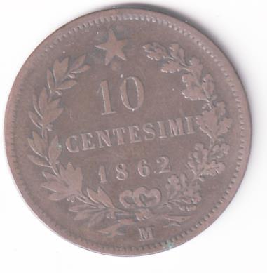 Moneta Regno d’Italia VITTORIO EMANUELE II RE D’ITALIA – 10 Centesimi 1862 Strasburgo
