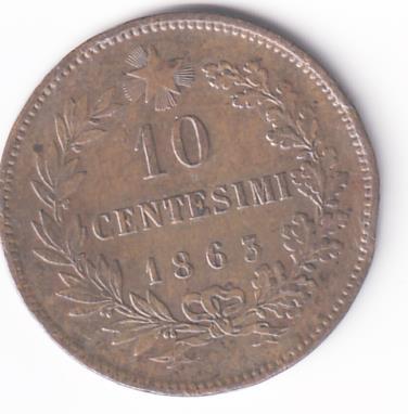 Moneta Regno d’Italia VITTORIO EMANUELE II RE D’ITALIA – 10 Centesimi 1863 Strasburgo