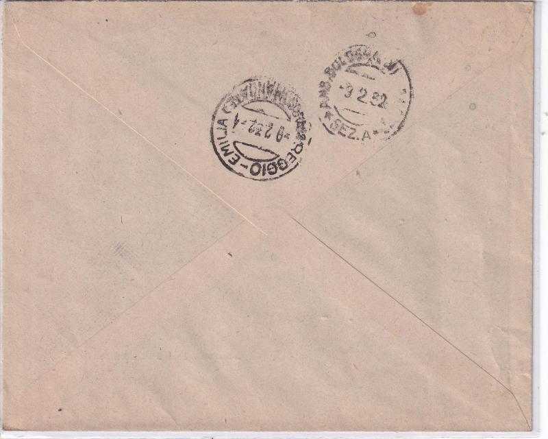 Storia postale. Raccomandata Reggio Emilia 5446 del 11/02/1930 a Treviso 12/02/1930
