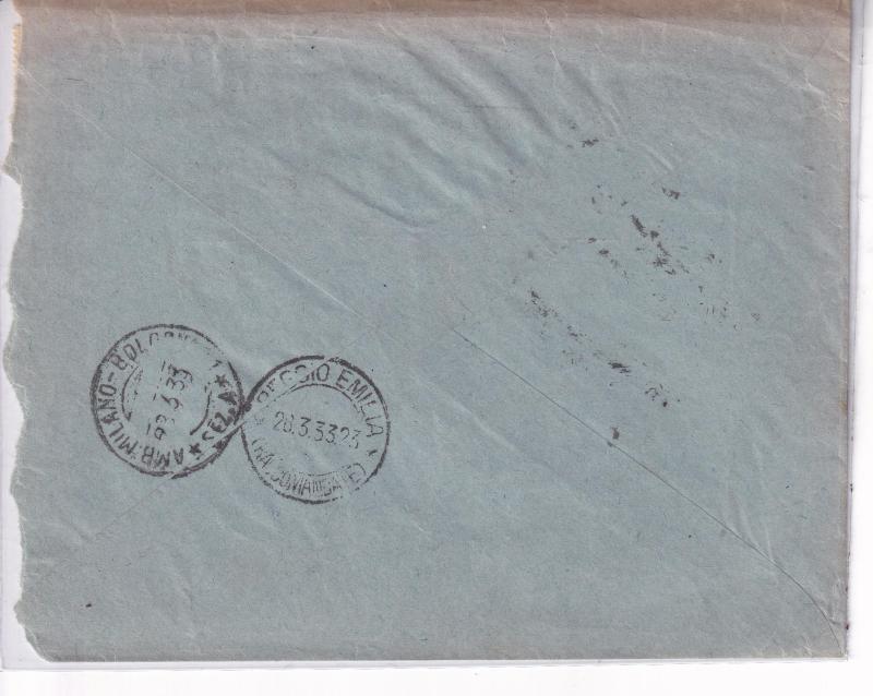 Storia postale. Raccomandata Espresso Milano 1809 del 28/03/1933 a Reggio Emilia 28/03/1933