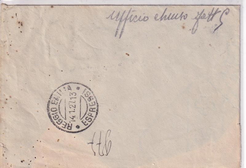 Storia postale. Espresso da Busana 14/01/1927 a Reggio Emilia 14/01/1927