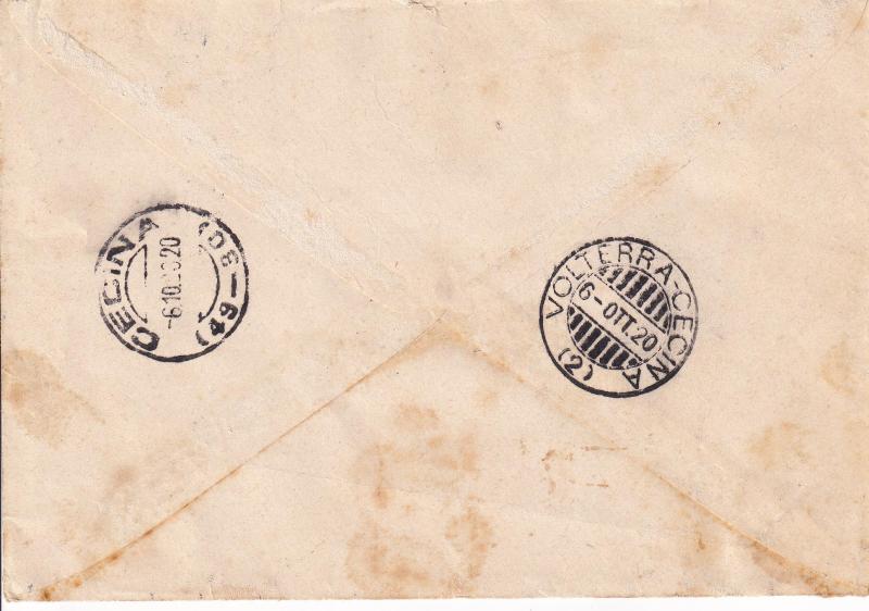 Storia postale, Espresso da Volterra del 06/10/1920 a Cecina 06/10/1920 ESPRESSO