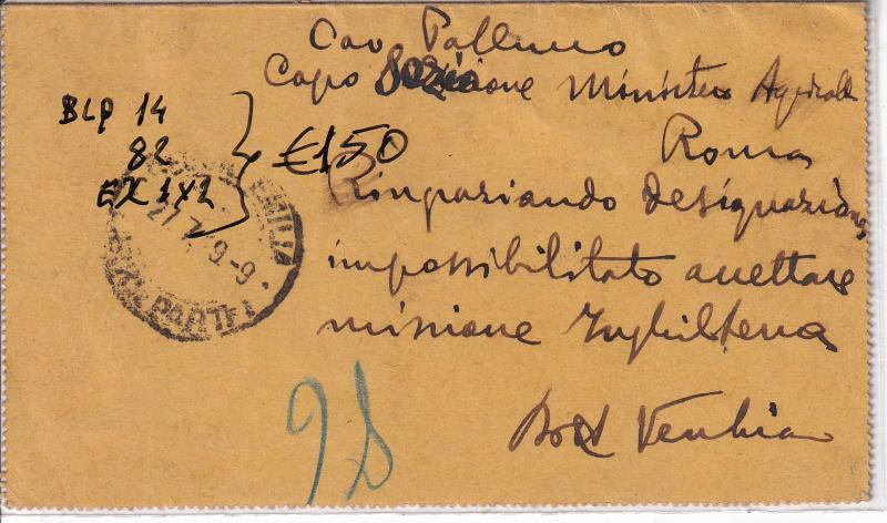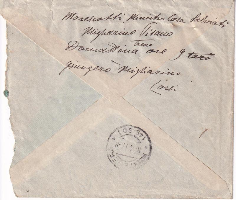 Storia postale, Espresso da Migliarino del 09/04/1917 a Bientina 10/04/1917