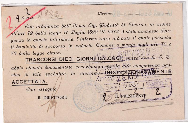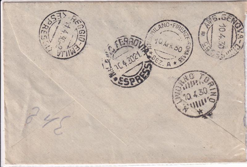 Storia postale. Espresso da Livorno 10/04/1930 a Reggio Emilia 11/04/1930