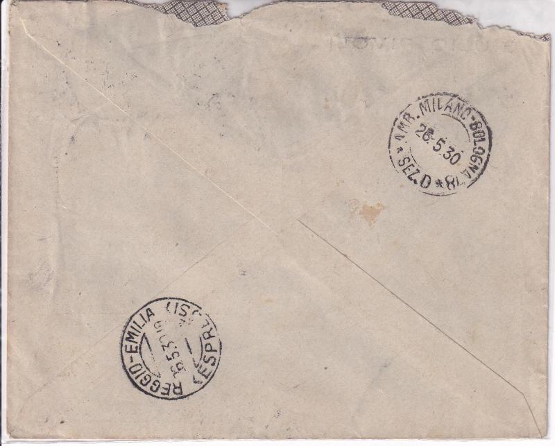 Storia postale. Espresso da Milano 26/05/1930 a Reggio Emilia 26/05/1930