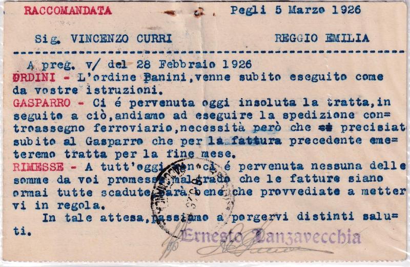 Storia postale, Espresso da Bergamo del 05/12/1921 a Reggio Emilia