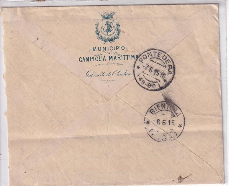 Storia postale. Raccomandata da Campiglia Marittima R 3817 del 07/06/1914 a Bientina (Pisa) 08/06/1914