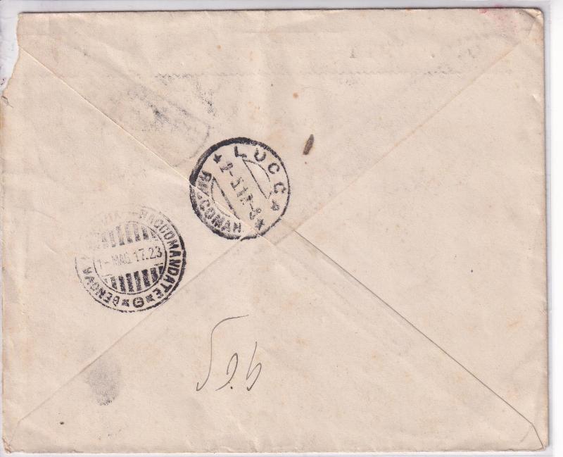 Storia postale. Raccomandata da Genova N. 9 R 409 del 01/05/1917 a Lucca 02/05/1917