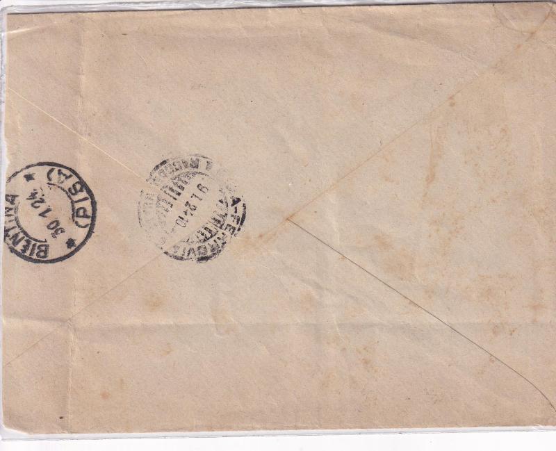 Storia postale. Raccomandata da Viareggio R 659 del 29/01/1924 a Bientina (Pisa) 30/01/1924