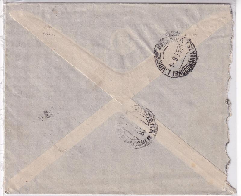 Storia postale. Raccomandata da Livorno R.1709 del 01/09/1928 a Bientina (Pisa) 01/09/1928