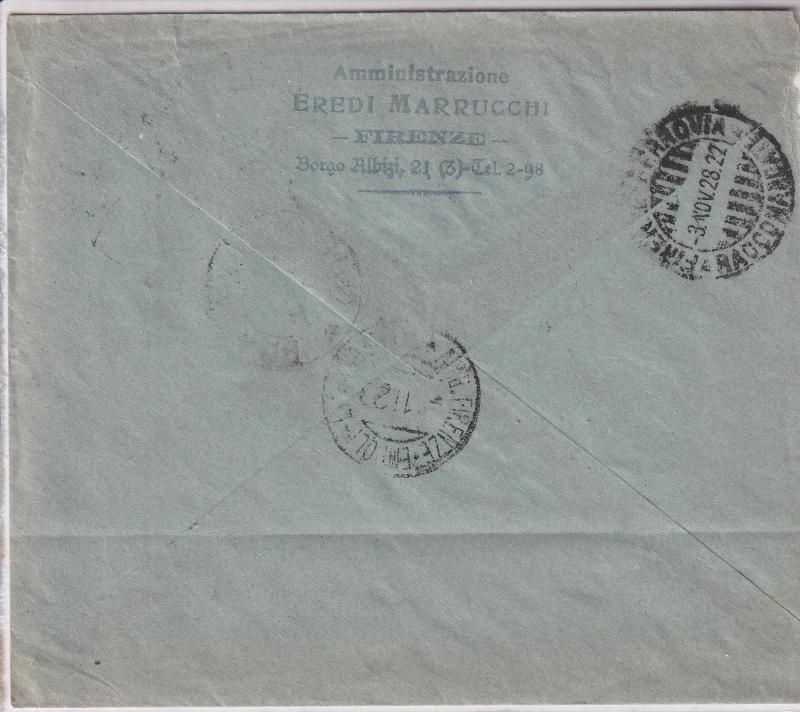Storia postale. Raccomandata da Firenze R 2058 del 03/11/1928 a Bientina (Pisa) 03/11/1928
