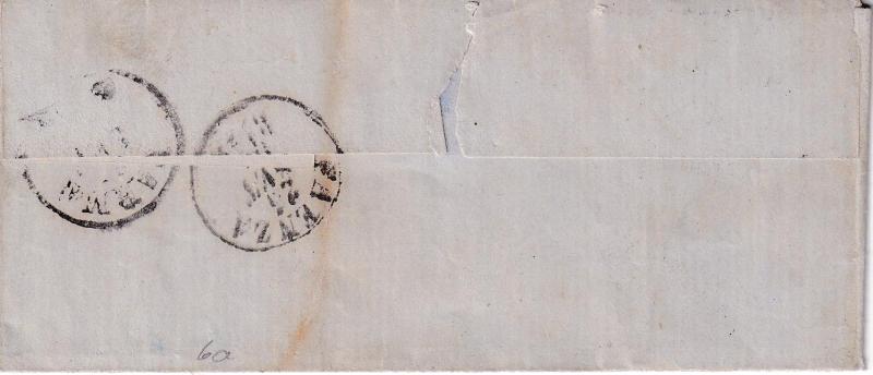 Prefilatelica. Strada Ferrata Leopolda da da Firenze 7 GEN IIII (1856) a Livorno 3567. Contiene messaggio