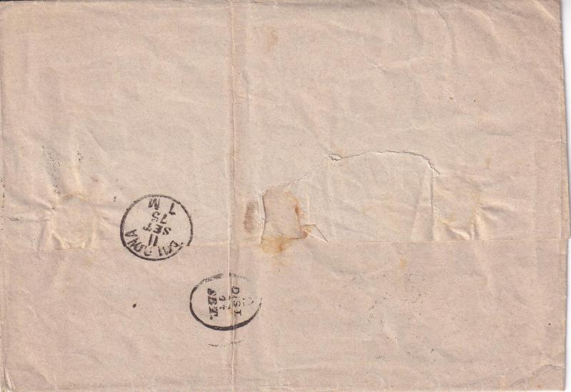 Storia postale Lettera da Imola 10/09/1875 a Bologna 11/09/1875