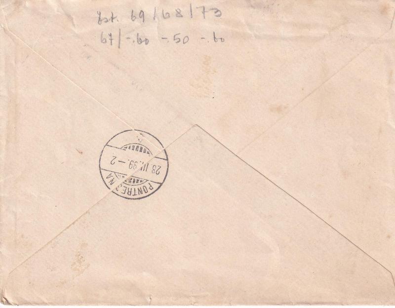 Storia postale. Lettera Bormio 27/03/1899 a Pontresina (Svizzera) 28/07!899