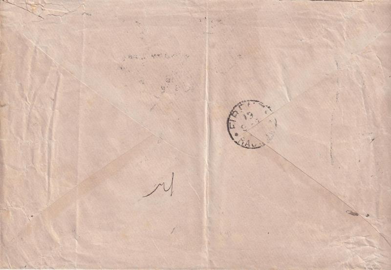 Storia postale Raccomandata da Reggio Calabria R 101 02/05/1878 a Piazza Armerina
