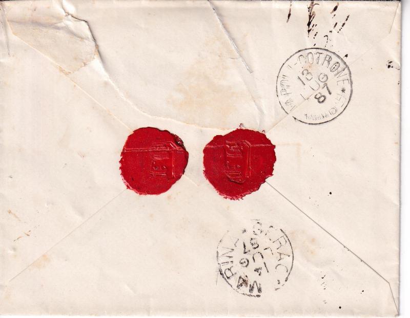 Storia postale Lettera da Lesmo 10/09/1875 a Lomagna 10/09/1875