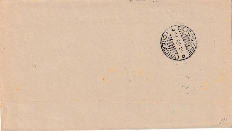 Storia postale Piego viaggiato Istituto di Previdenza Sociale per le Provincie di Cremona e Mantova Sede di Cremona 20/06/1924 all’Ill.mo Sig. Sindaco di Derovere (Cremona)