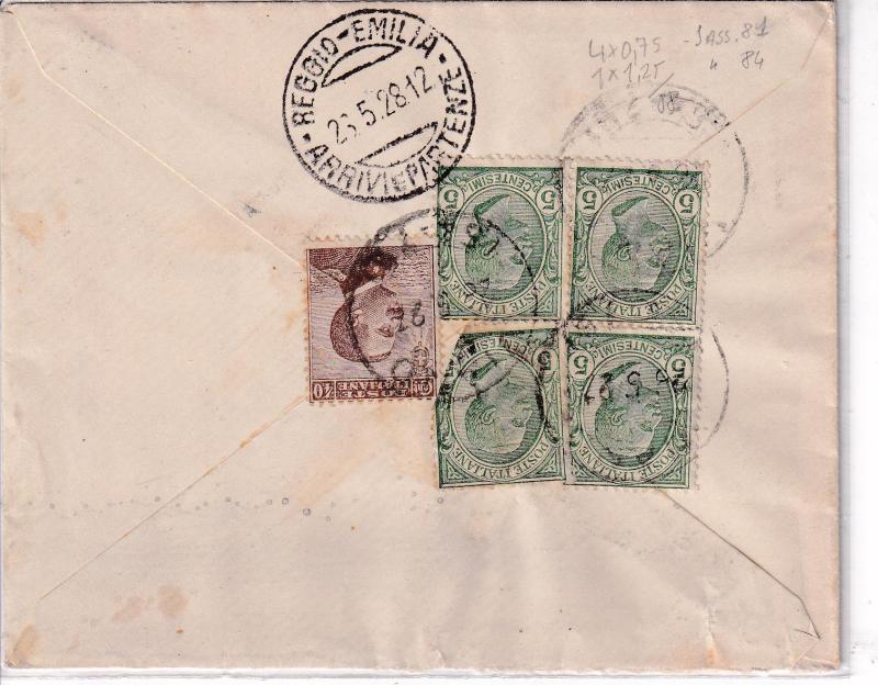 Storia postale. Raccomandata da Reggio Emilia R 579 del 07/05/1927 Villa Cavazzoli a Reggio Emilia 16/05/1930