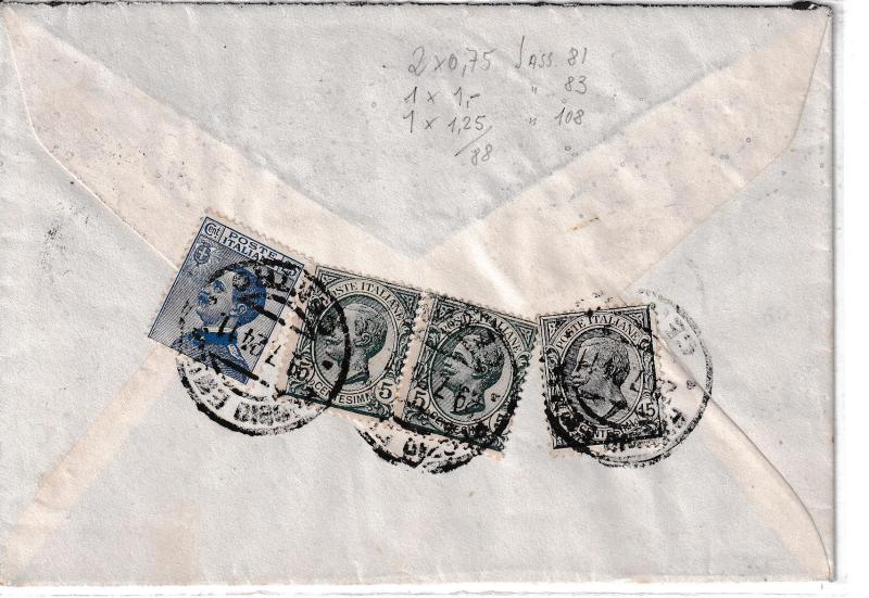 Storia postale. Lettera da Palermo 04/07/1908 a Reggio Emilia 06/07/1908
