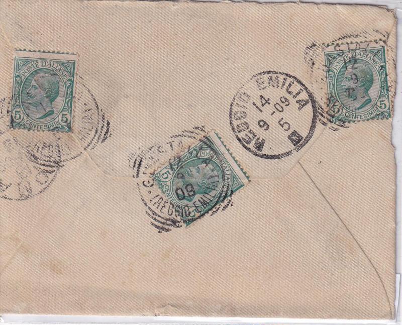Storia postale. Lettera da Guastalla 12/09/1909 a Reggio Emilia 14/09/1909