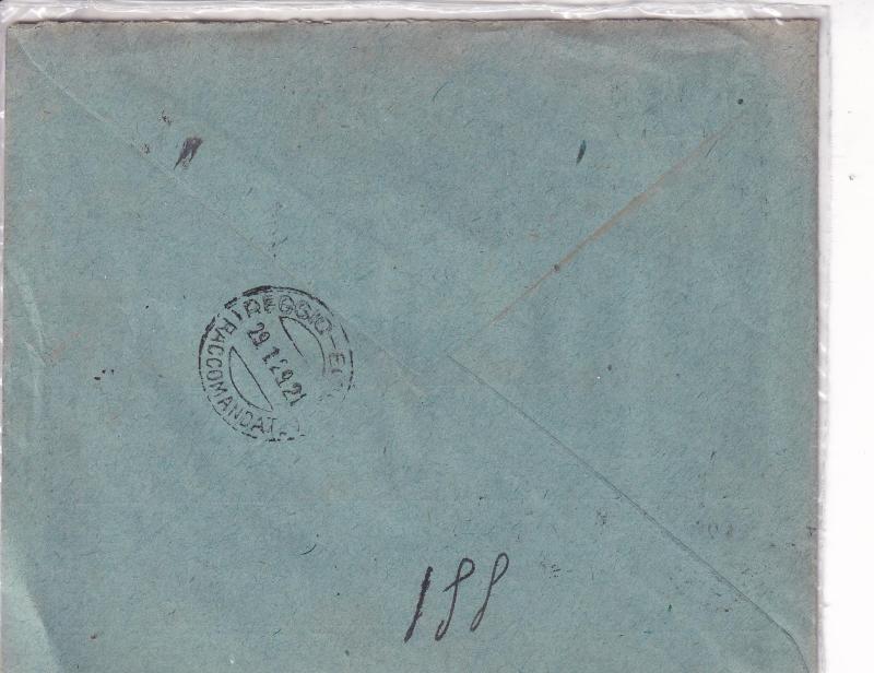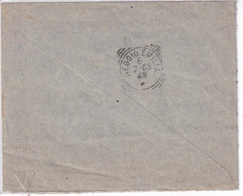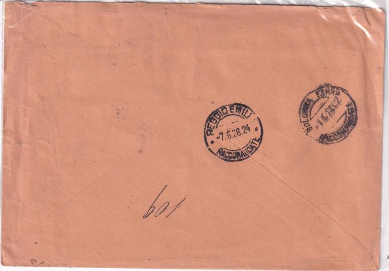Storia postale. Raccomandata da Reggio Emilia R 0006 del 03/10/1927 Città 03/10/1927