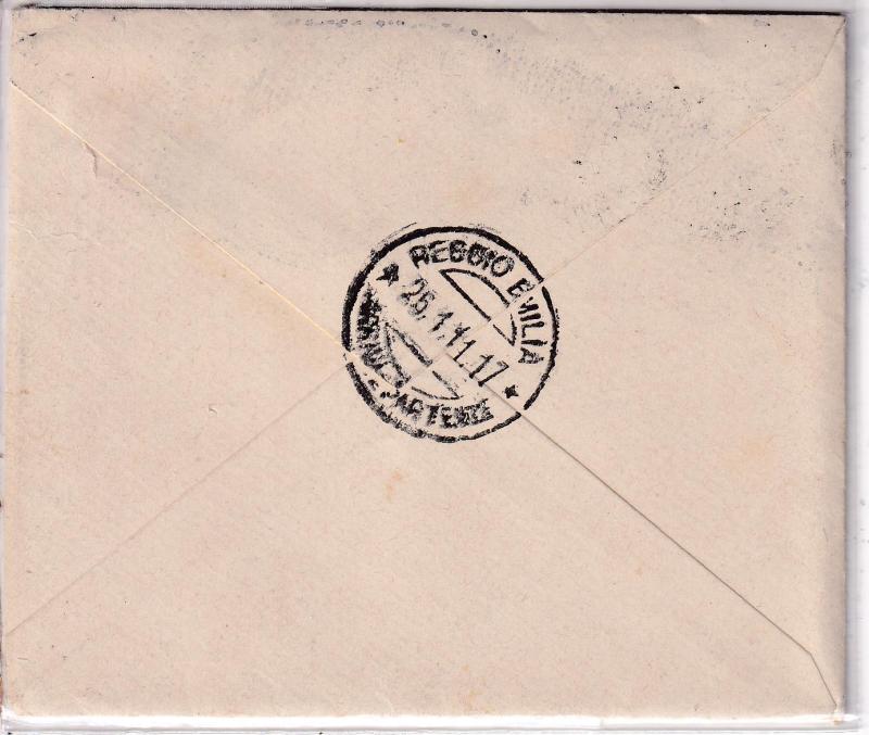 Storia postale. Lettera da Milano 25/11/1911 a Reggio Emilia 26/11/1911