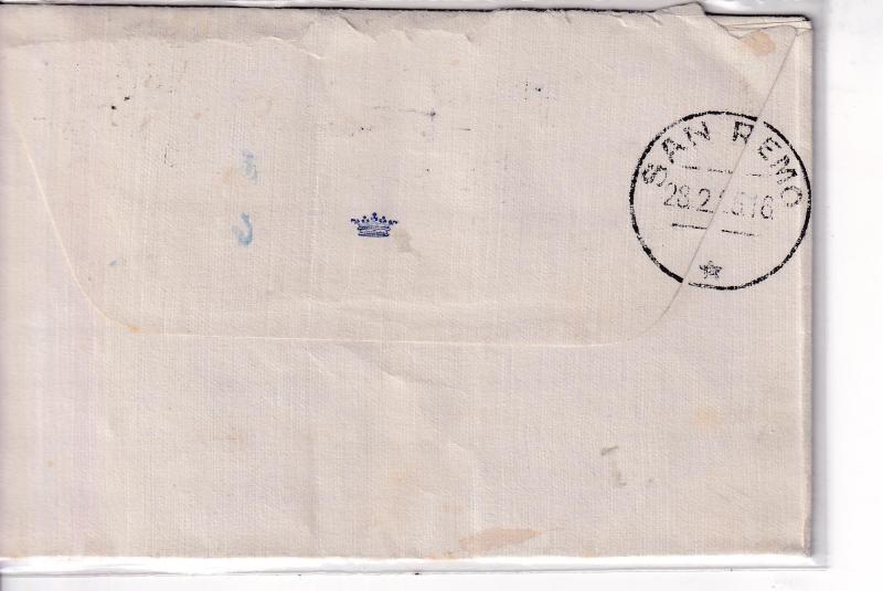 Storia postale. Lettera da Roma 27/02/1925 a San Remo 28/02/25