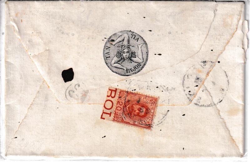 Prefilatelica. Strada Ferrata Leopolda da Firenze 3 OTT 1866 a Pisa. Contiene lo scritto