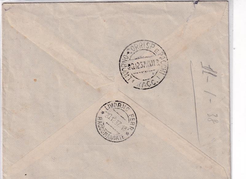 Storia postale. Raccomandata Espresso da Piombino R 3311 del 20/12/1937 a Livorno 20/12/1937