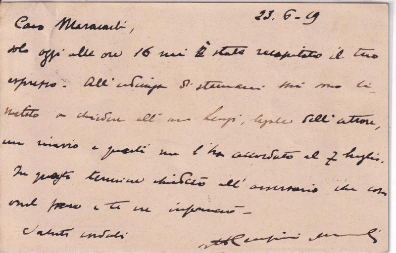 Storia postale. Lettera da Filettole 05/11/1909 a Bari