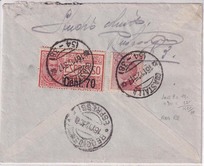 Storia postale. Espresso da Guastalla 16/11/1925 a Reggio Emilia 16/11/1925