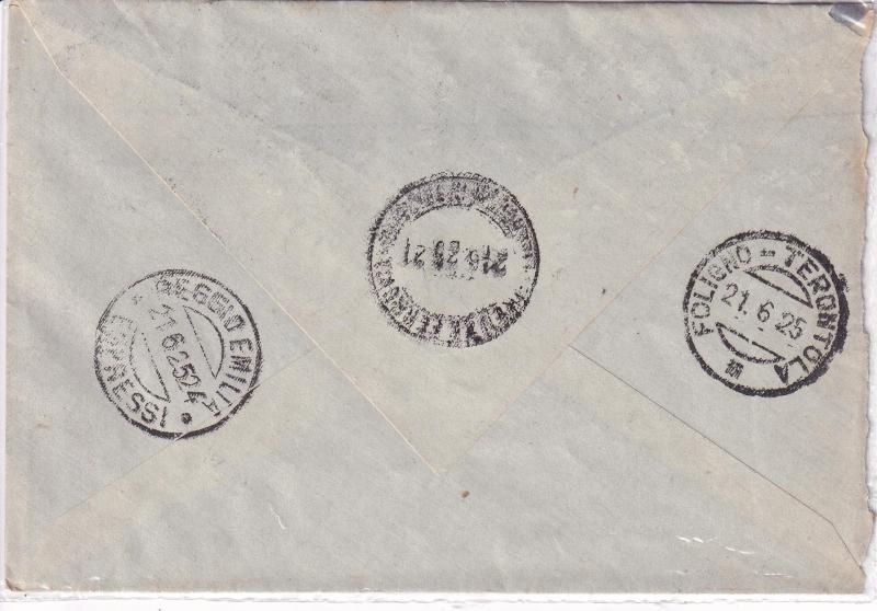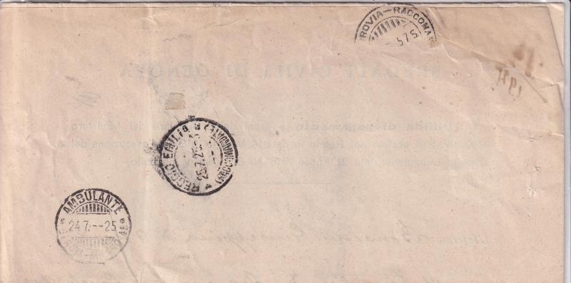Storia postale. Raccomandata R. R. da Genova 10 5090 del 26/07/1925 a Viano