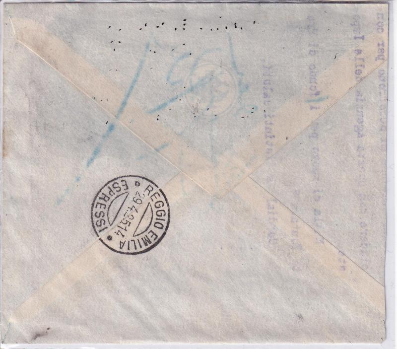 Storia postale. Espresso da Ramiola 13/10/1925 a Reggio Emilia 13/10/1925
