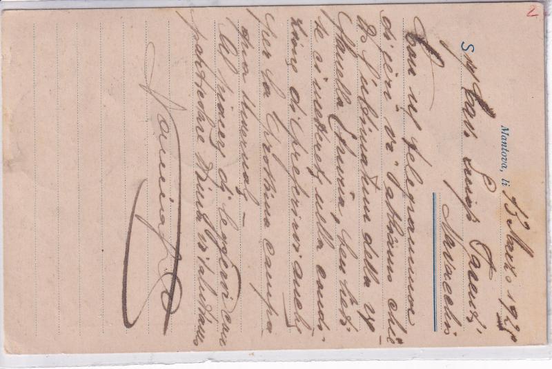 Storia postale. Cartolina Raccomandata da Mantova 35 n 459 del 13/03/1925 a Navacchio