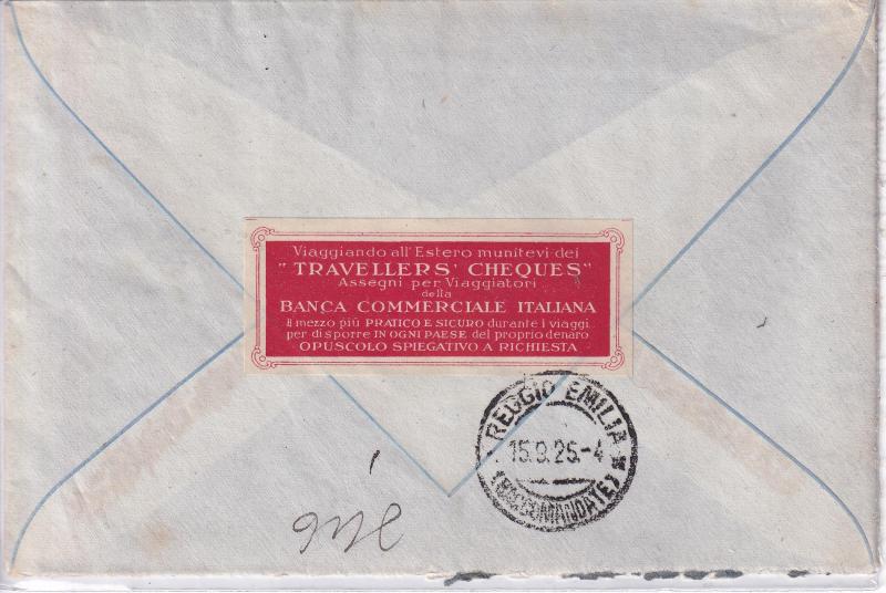 Storia postale. Raccomandata da Reggio Emilia R 4053 del 22/07/1925 a San Lazzaro Parmense