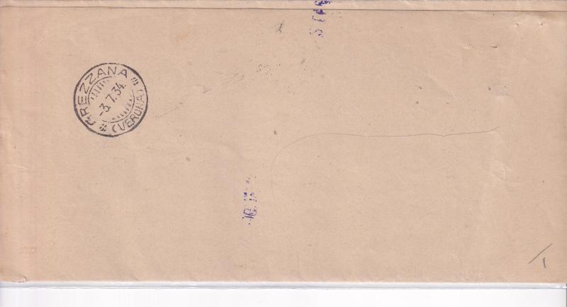 Storia postale. Raccomandata da Verona 2 5014 del 02/07/1934 a Grezzana
