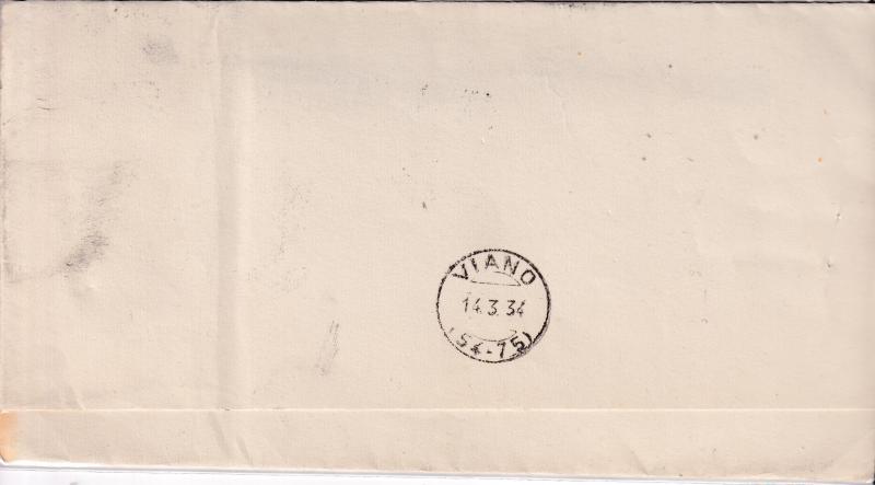 Storia postale. Raccomandata R. R. da Reggio Emilia 665 del 13/03/1934 a Viano 14/3/1934