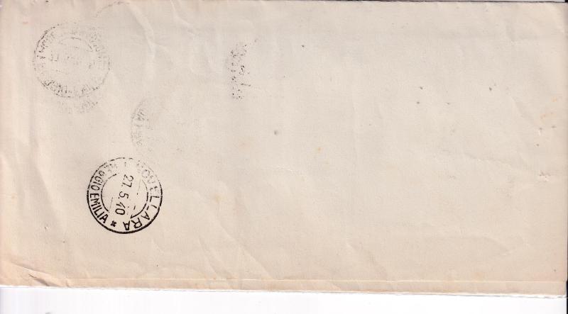 Storia postale. Raccomandata A. R. da Reggio Emilia 5649 del 26/05/1940 a Novellara 27/05/1940