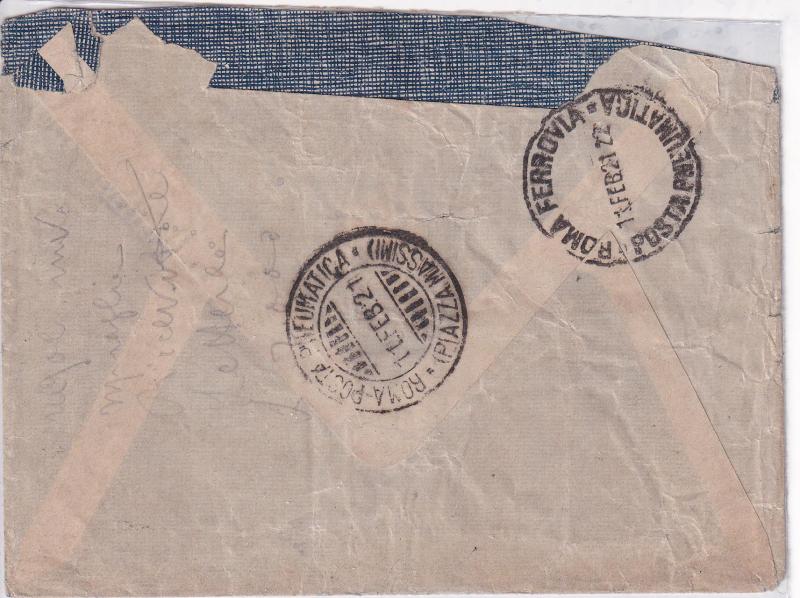 Storia postale. Espresso da Montepulciano del 11/02/1921 a Roma 11/02/1921