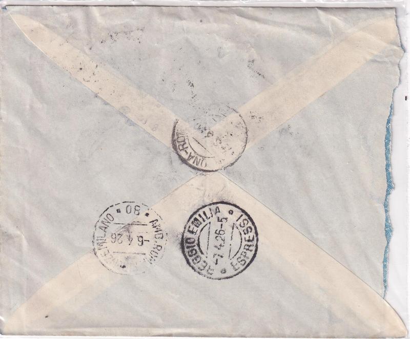 Storia postale. Espresso da Terni 06/04/1926 a Reggio Emilia 07/04/1926