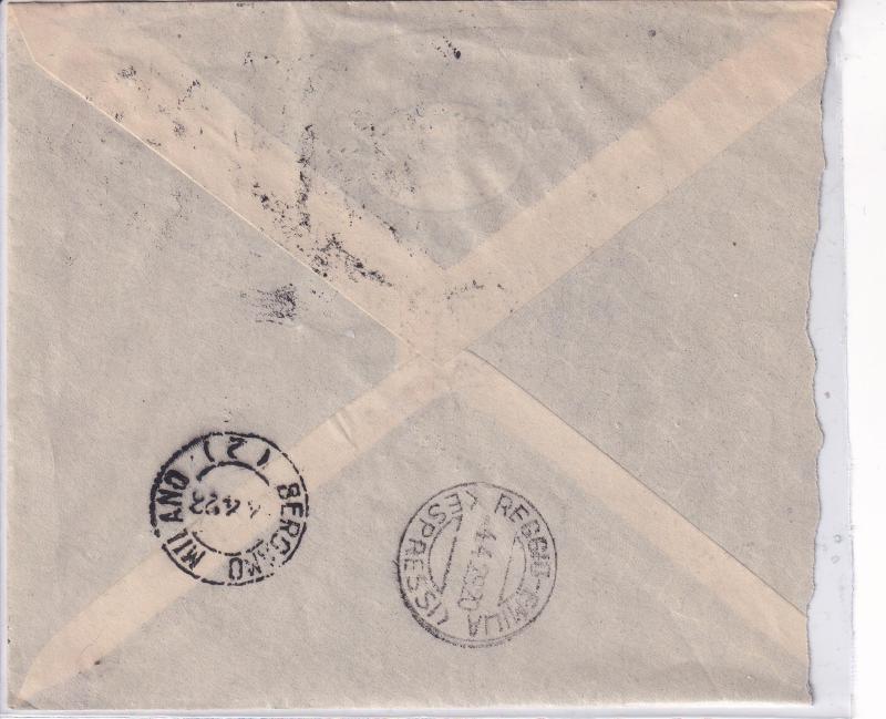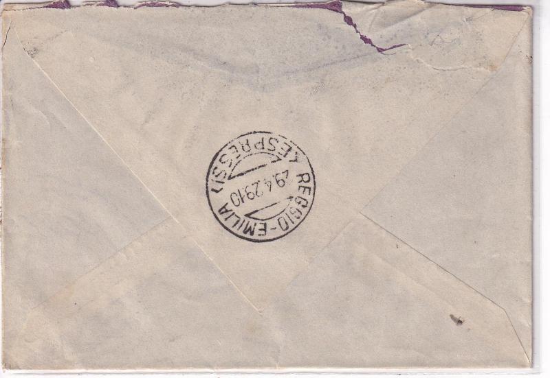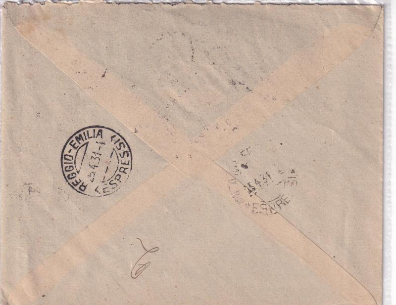 Storia postale. Espresso da Bergamo 25/04/1931 a Reggio Emilia 25/04/1931