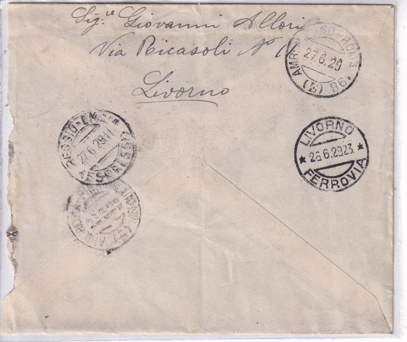 Storia postale. Espresso da Livorno 26/06/1929 a Reggio Emilia 01/04/1928
