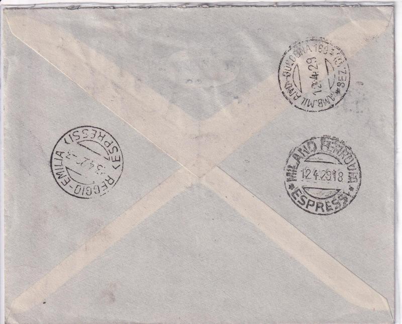 Storia postale. Espresso da Bergamo 12/04/1929 a Reggio Emilia 12/03/1929