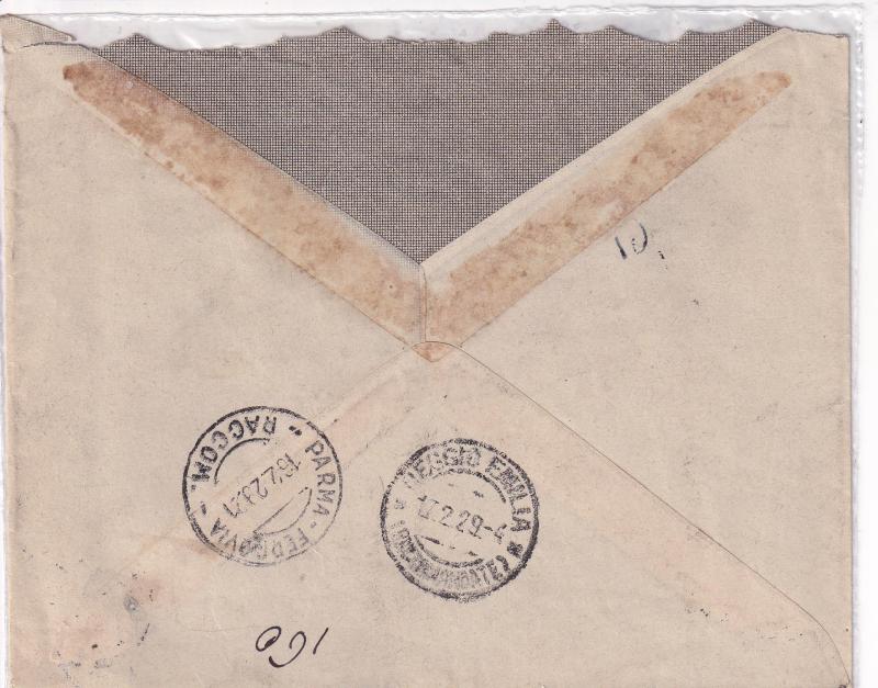 Storia postale. Raccomandata Espresso da Parma R 905 16/05/1931 a Reggio Emilia 16/05/1931