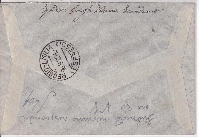 Storia postale. Espresso da Scandiano 26/08/1929 a Reggio Emilia 26/09/1929