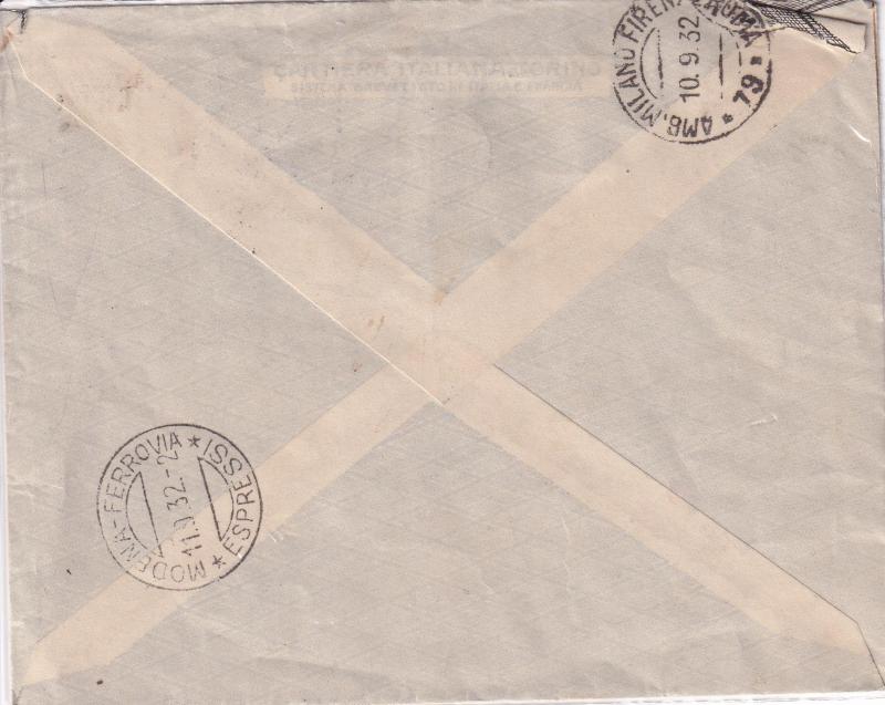Storia postale. Espresso da Torino 10/09/1932 a Modena 11/09/1932